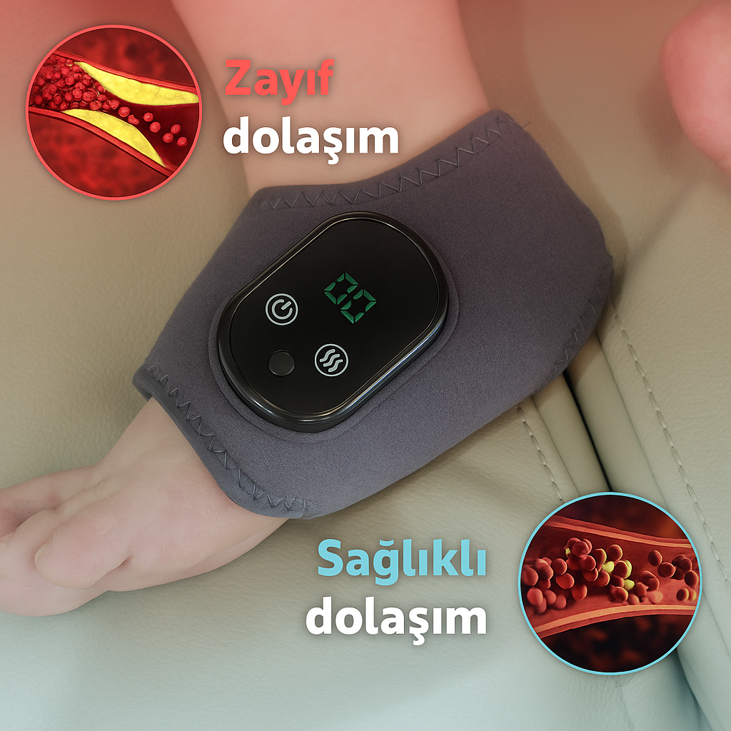 Cihaz, ısı, titreşim ve kompresyon terapilerini bir araya getirerek kan dolaşımını hızlandırır, yorgunluk ve ağrıyı azaltır.
